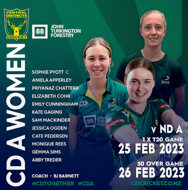 CENTRAL DISTRICTS A meanwhile hosts Northern Districts A at Levin's Donnelly Park in both formats this weekend, CD A coach BJ BARNETT naming another strong CD A squad.