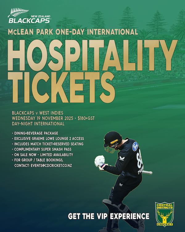 Hospitality tickets for the Nelson games are only on sale until this Friday 24 October while Napier punters have until Wednesday, 5 November to secure catered hospitality tickets to the Graeme Lowe Lounge 2 that also includes a catered dining with two drinks package and a Super Smash complimentary double pass.